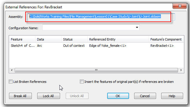 Understanding and keeping tabs on these are the key to creating robust top down assemblies- bad references can cause errors, unpredictable updating and slow rebuild times as the software attempts to find a solution. If you are concerned that these references are being created unintentionally, you can use the No External References button available when editing a part in the assembly to prevent them being created in the first place.