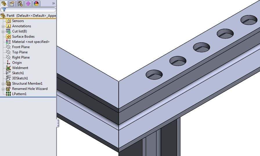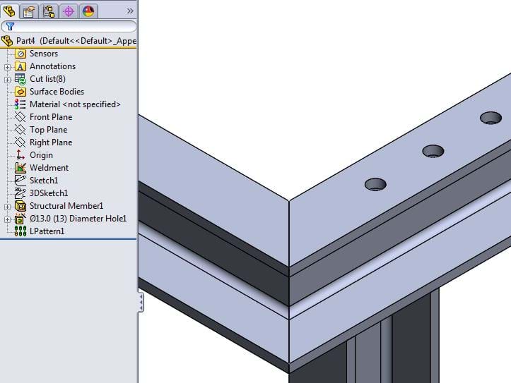 Example size hole 13 dia with Linear Pattern