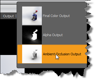 Right away you won’t notice any difference. However an extra output type will be available from the pull down at the top of the screen after a final render. It is usually set to “Final Colour Output” but you can choose Ambient Occlusion from the drop down.