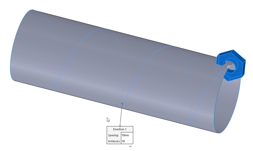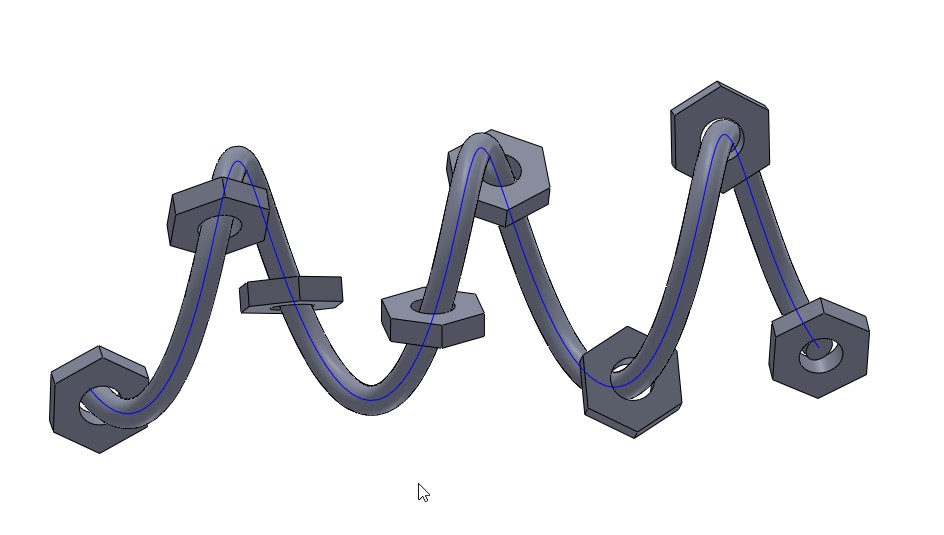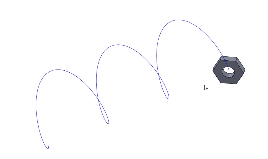 For this example, The starting point was to draw a helix and the seed feature- I then wanted to pattern the nut so that it followed the helix as if it were linked or welded to a chain that passed through.