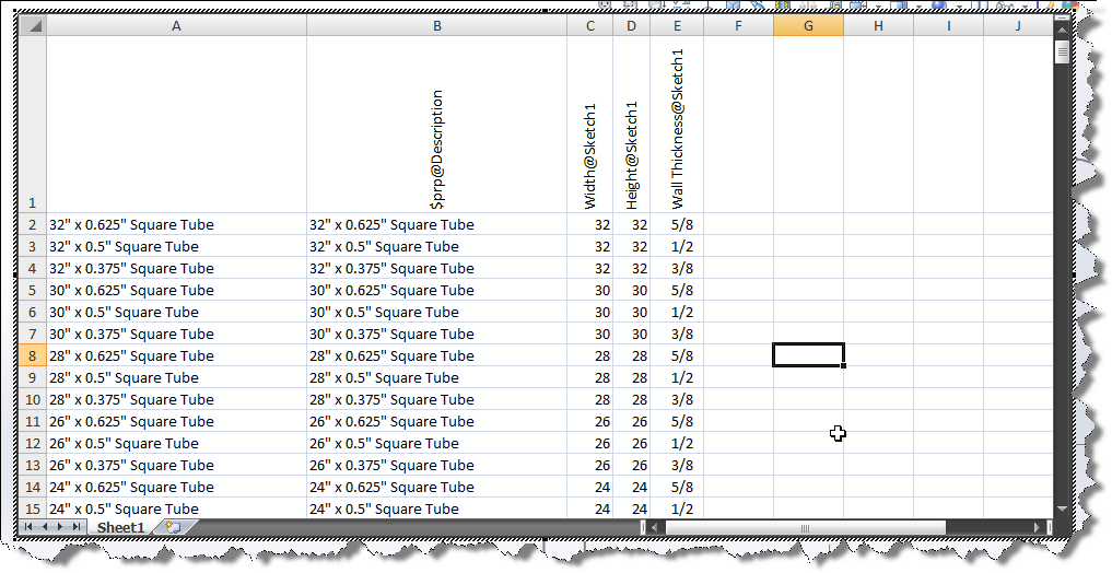 The excel spreadsheet can have the column heading representing key dimensions that may alter between each profile: