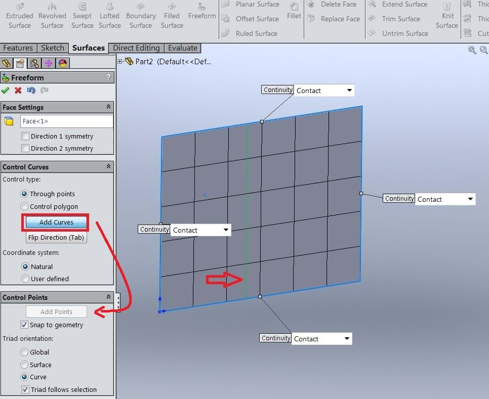 Plus Freeform is a command that can be used to modify solids or surfaces