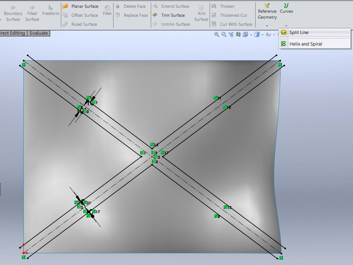 And then used the Split Line command to divide up the faces - which I then coloured: -