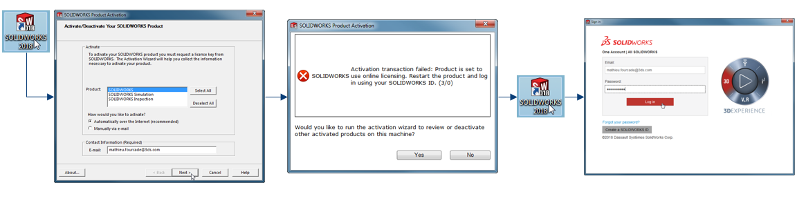 • SOLIDWORKS is launched on a PC (work for example) and the login screen allows access to SOLIDWORKS.