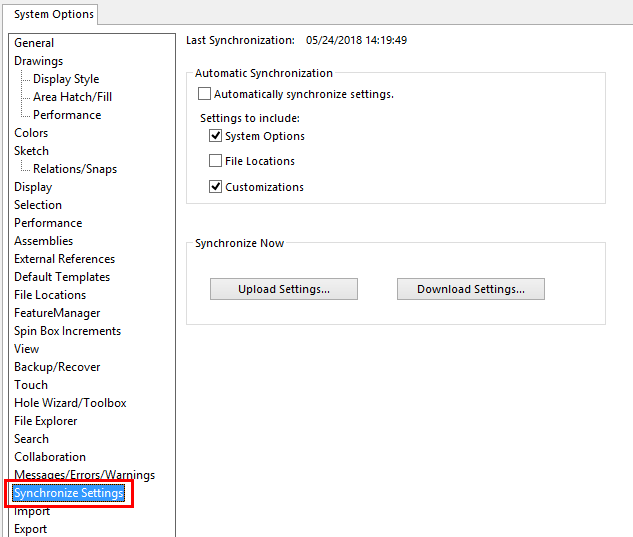 • You can synchronise your SOLIDWORKS settings by storing them within your account- therefore no matter where you login, your user interface, keyboard and mouse shortcuts etc can stay the same.