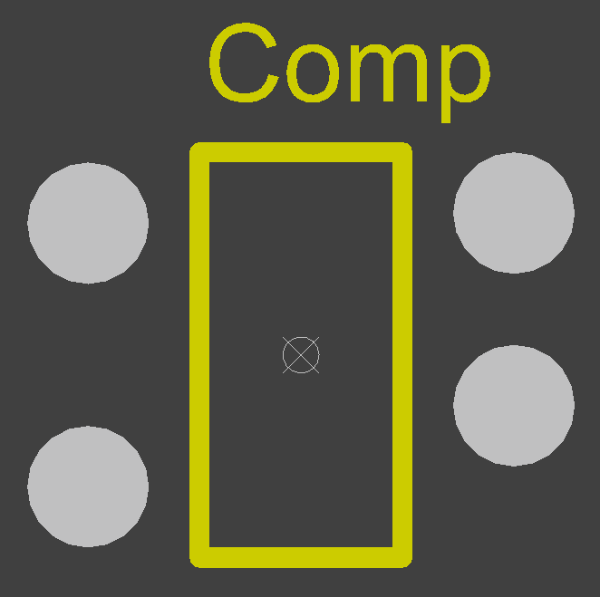 A footprint for the PCB is created in its own library from Project > Libraries > Add New PCB Library. The footprint is formed using functionality from the Home > Place ribbon. The footprint will contain shapes, pads and text, plus other items. The footprint may also carry a height. Here is a ‘non-descript’ four pin footprint for example purposes: