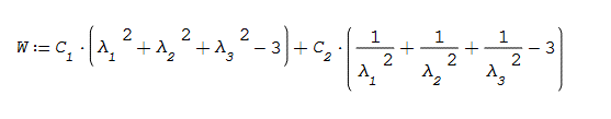 Where C1 and C2 are the constants and λ1, λ2 and λ3 are stretch ratios in X,Y and Z.