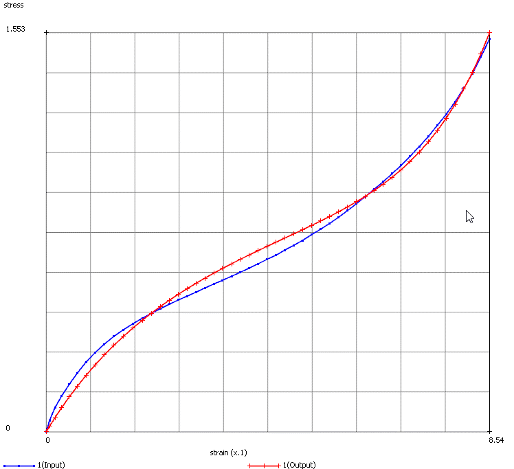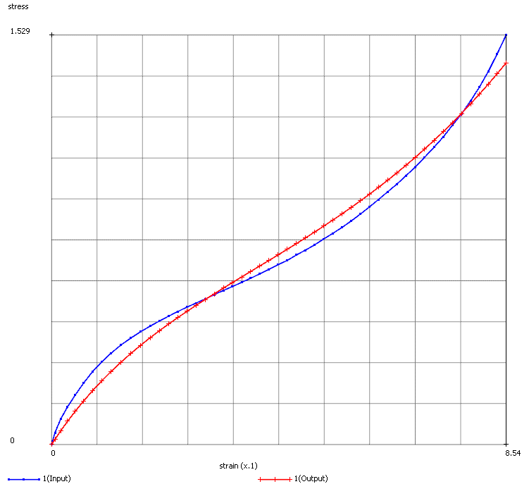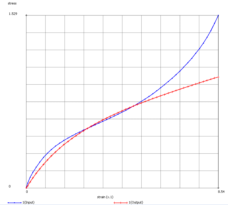 So how do we proceed? We need to use a mathematical model to represent the test data. Many non-linear elastic models are available require inputs in the form of constants in a strain energy function, for example 2nd Order Mooney model: