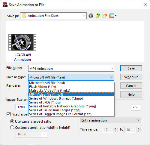 To save as an .mp4 file, click the Save Animation button and drop down Save as type to .mp4.